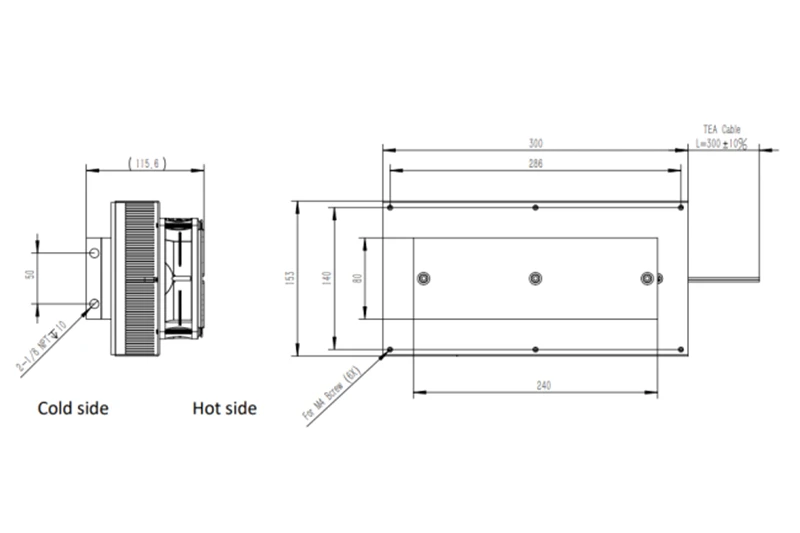 Cold side thermal dissipated | Liquid transfer by Aluminum exchanger |