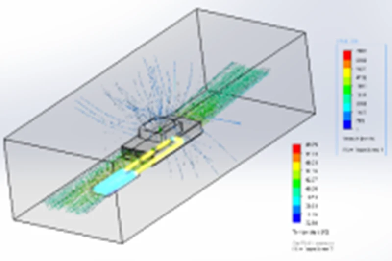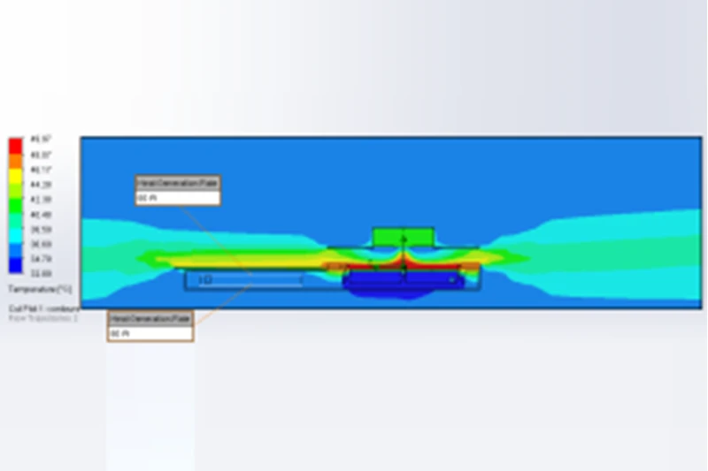 The ambient temperature in 35°C, the operation voltage 24VDC. A dummy heater exchanger generated 120w inside liquid exchanger. The simulation result requires thermoelectric cooling unit to maintain 35°C inside the exchanger, flow rate 4L/min.